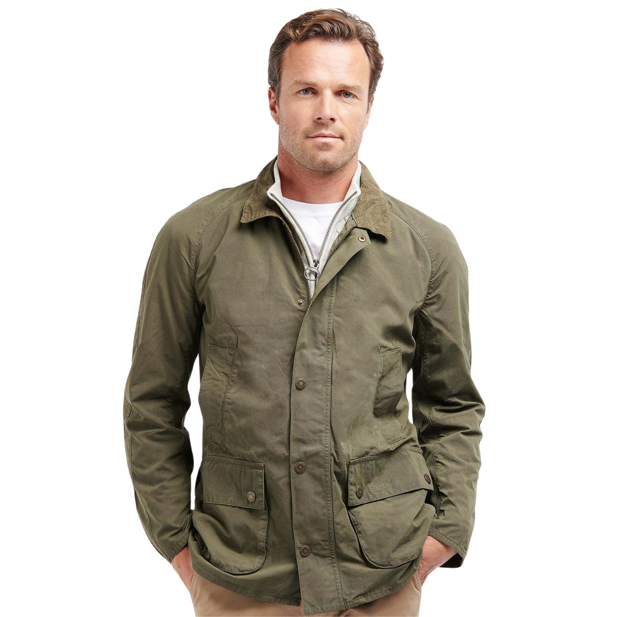 BARBOUR ASHBY CASUAL JACKET OLIVE FIT: Normale pasvorm met een subtiele taillering.