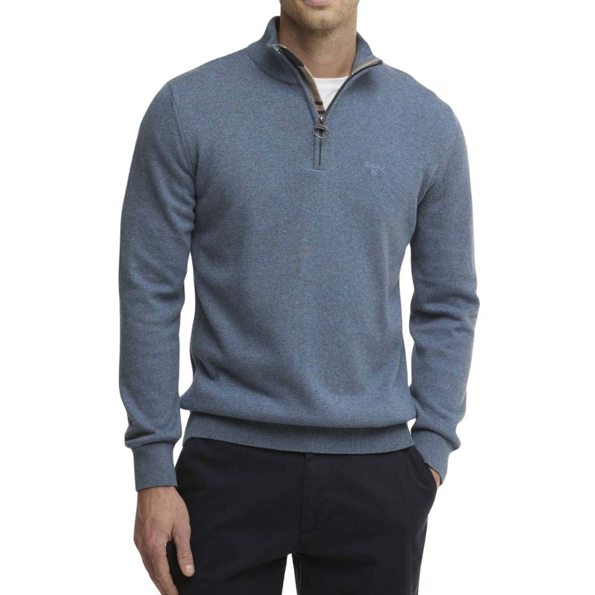 BARBOUR COTTON HALF ZIP KNITTED JUMPER DUSK BLUE