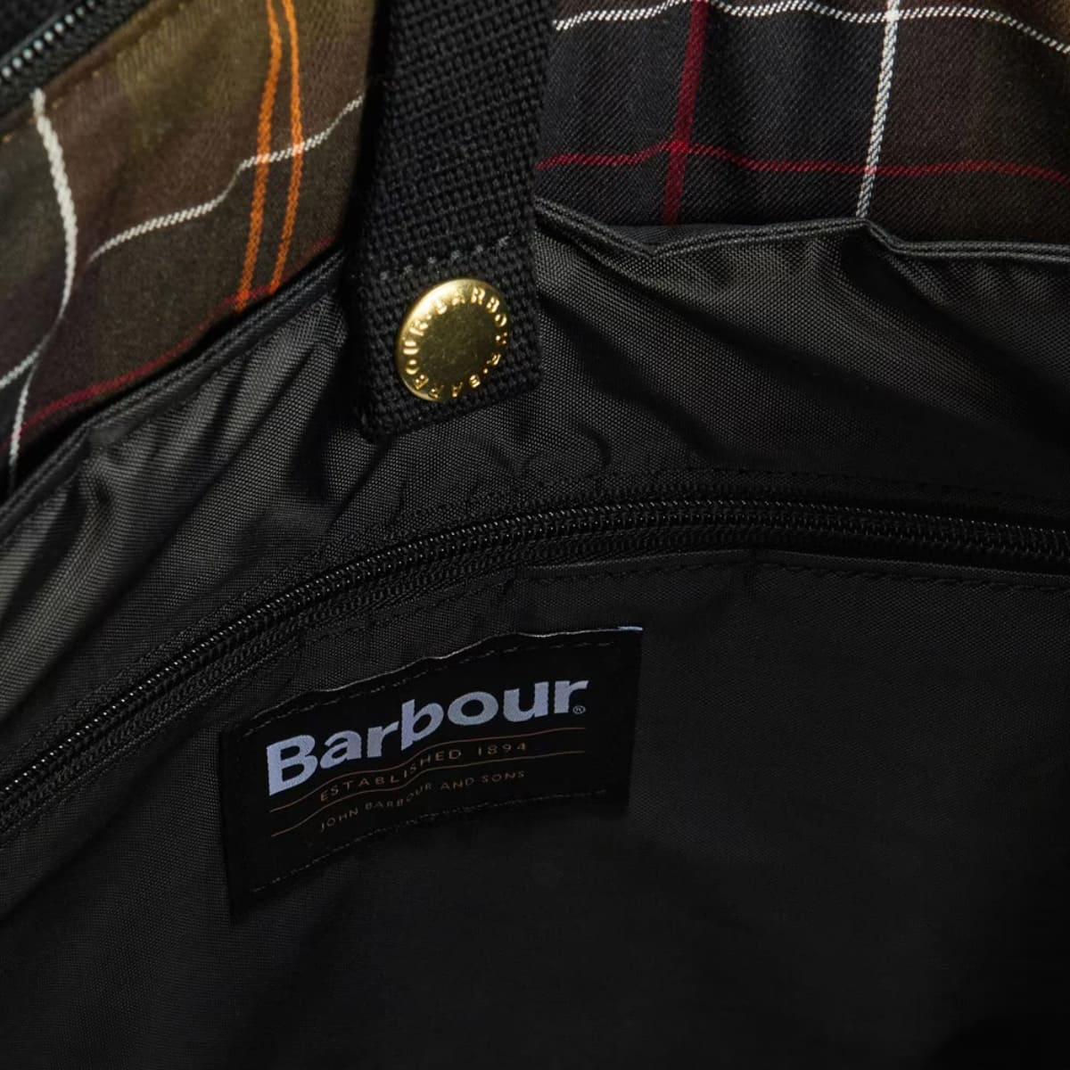 | Specificaties | >Gemaakt van robuust, weerbestendig gewaxte katoen >Barbour tartan voering >Trolleyband >Ruim hoofdcompartiment >Pocket aan de binnenzijde met rits voor waardevolle spullen >Gevoerd laptopvak >Voorvak met rits >Sterke handgrepen >Te dragen in de hand of over de schouder >Perfect formaat voor werk of school >Hoogte: 42 cm, Breedte: 30 cm, Diepte: 12 cm >Geweven Barbour logo |