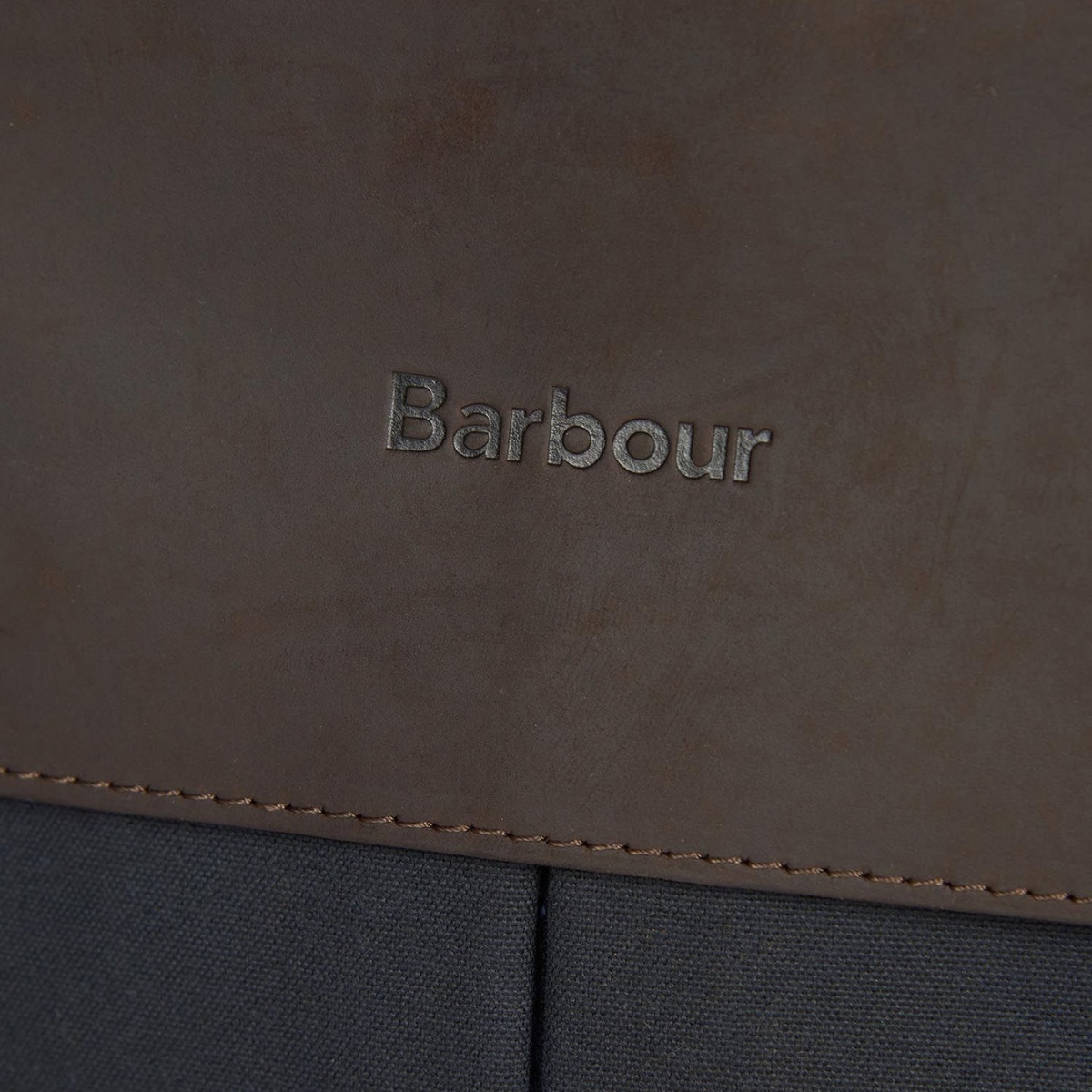 | Materiaal | Buitenzijde van gewaxed katoen met leren afwerkingen en Barbour tartan voering, hardware in antiek messing. |