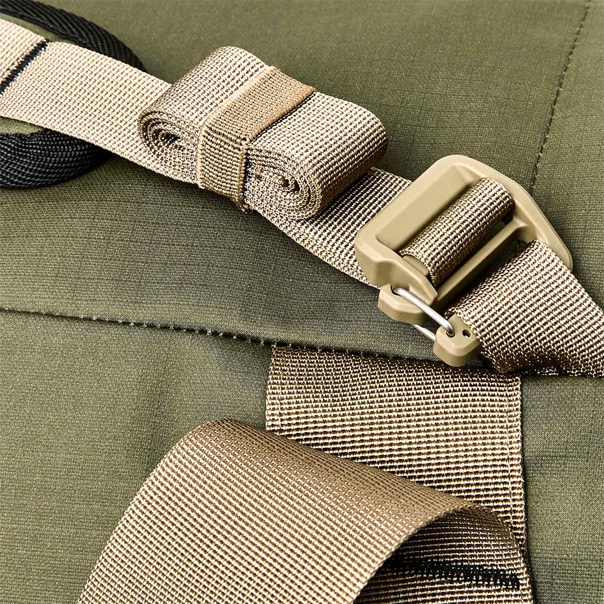 - Bovenkant van de tas: 300D ripstop → lichtgewicht & scheurbestendig
