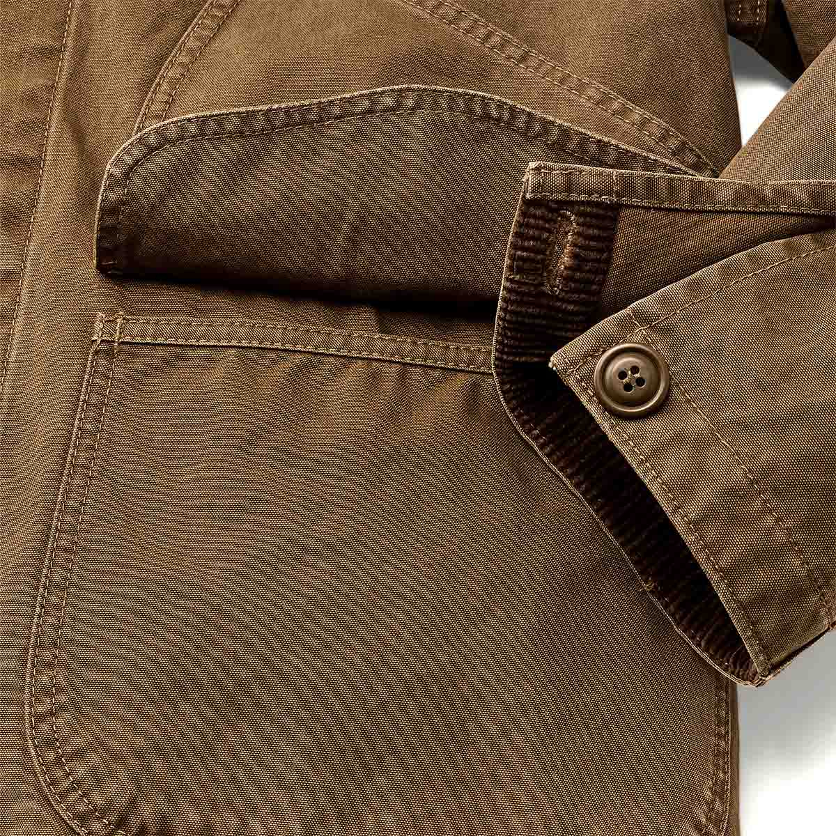 Specificaties | >Sterk canvas van 10,5 oz. >Knoopsluiting aan de voorkant >Met knopen verstelbare manchetten >Combinatie van handzakken en cargozakken met klep >Kraag gevoerd met corduroy >Polslengte |