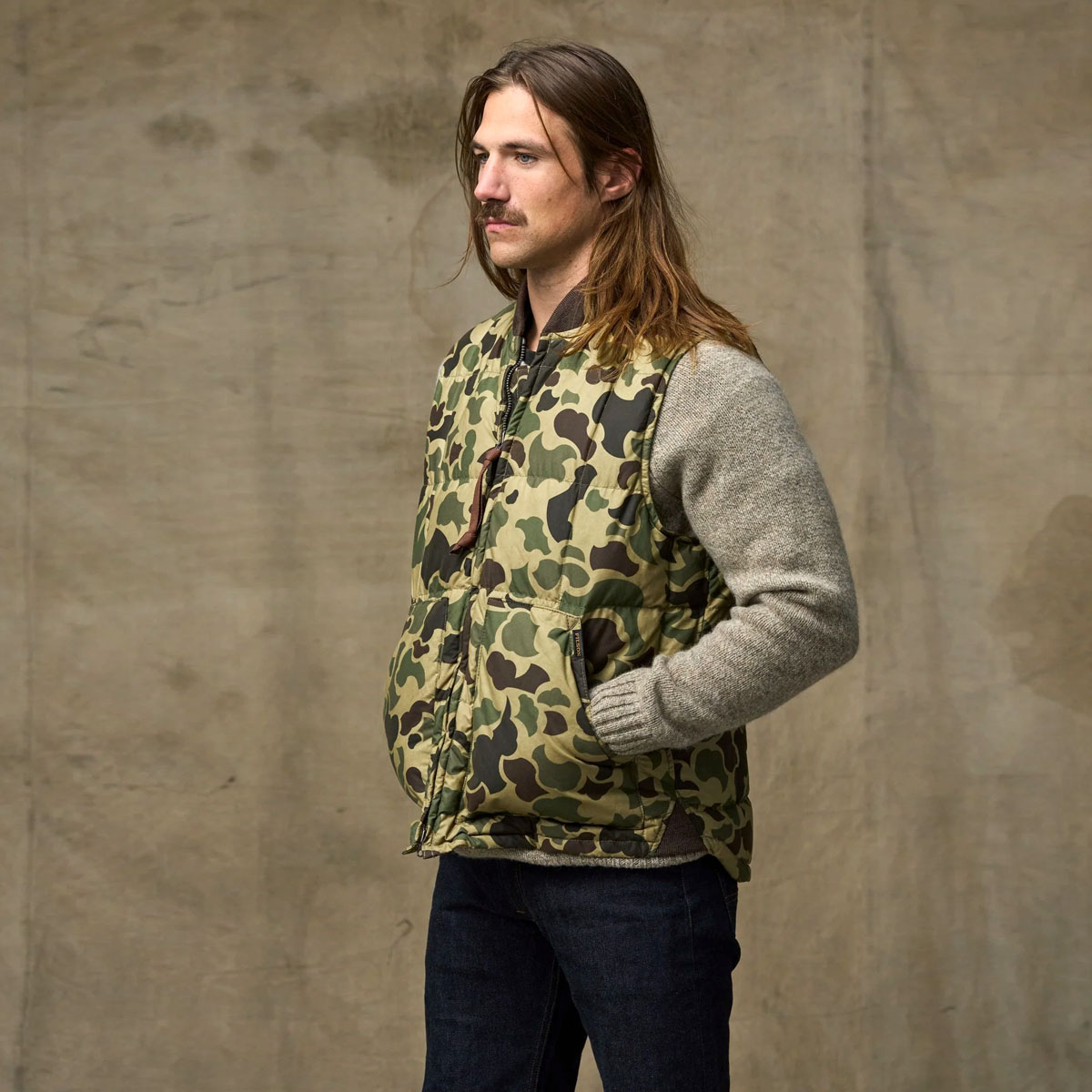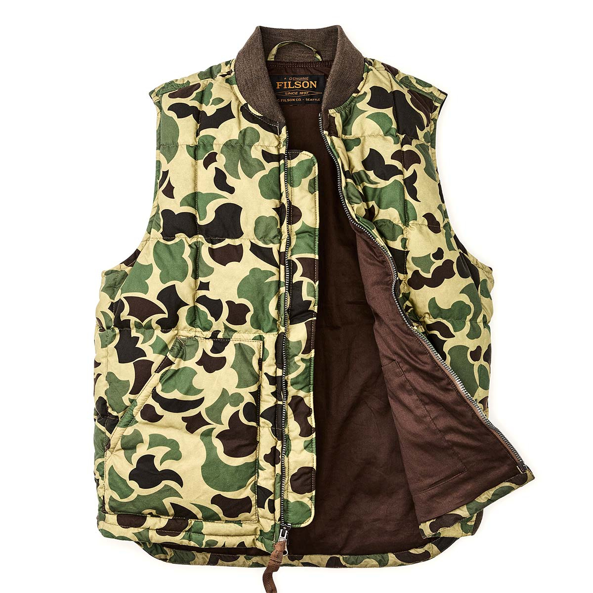 FILSON WAXED DOWN VEST TUNDRA SHRUB CAMO