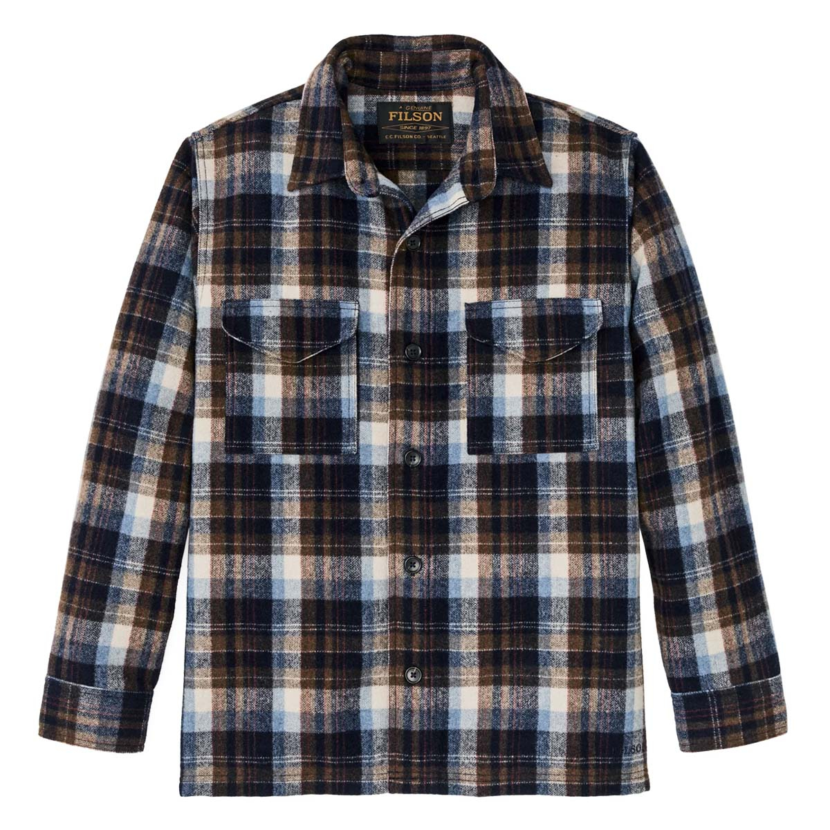 FILSON WOOL JAC-SHIRT BROWN/LIGHT BLUE MULTI PLAID