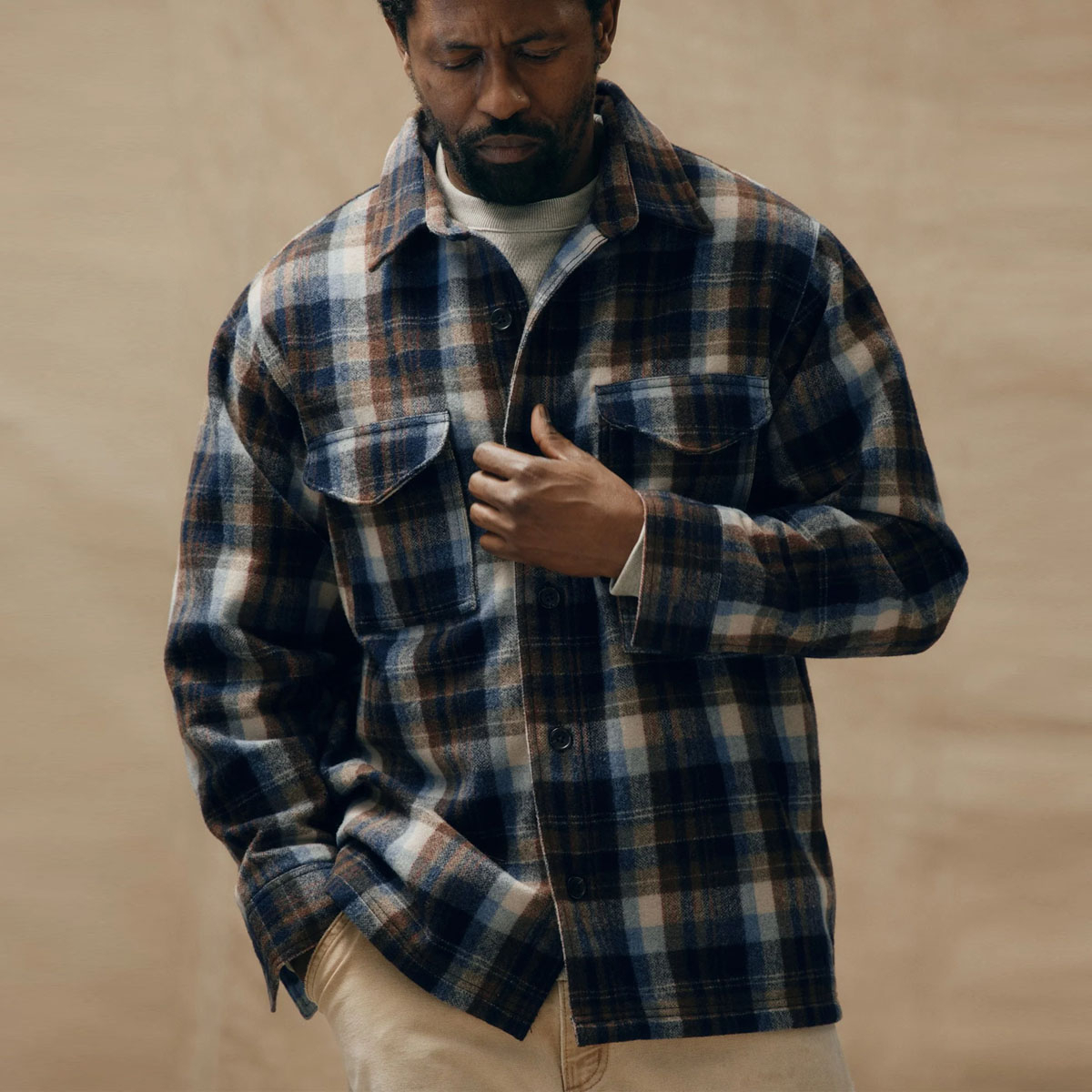 FILSON WOOL JAC-SHIRT FIT: De relaxte pasvorm biedt ruimte voor middelzware lagen eronder. Wij raden aan om een maat kleiner te nemen.