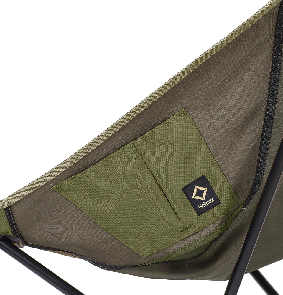 De Tactical Sunset Chair heeft minimale naden en toegevoegde opbergvakken voor waardevolle spullen en uitrusting.