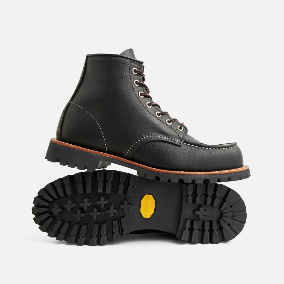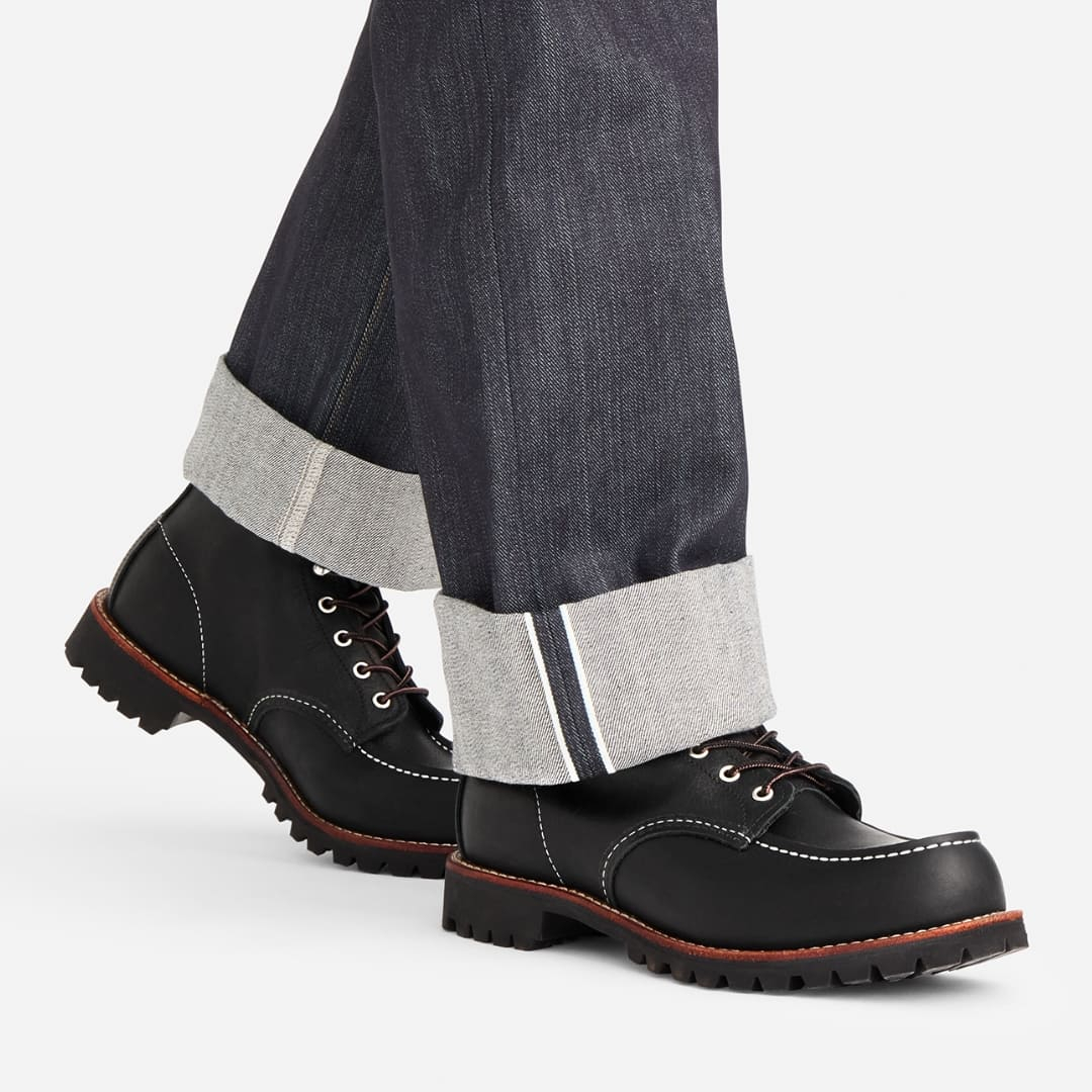 De Red Wing 2949 Roughneck Moc Toe Boot Black Oil Slick is geïnspireerd op een schoen die in de vorige eeuw werd gemaakt voor arbeiders op olieplatforms.